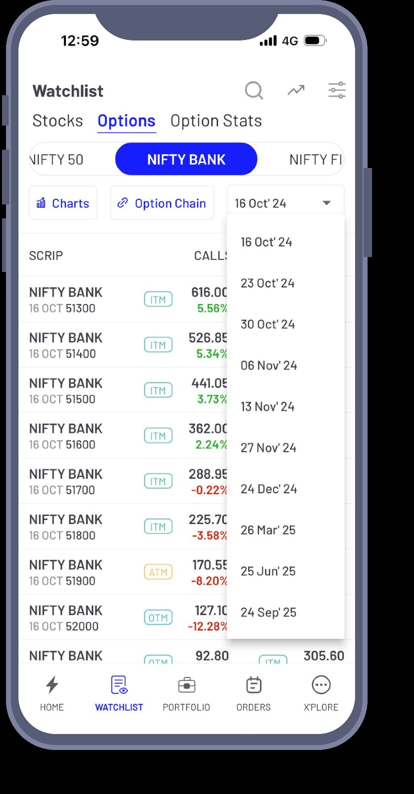 Traders can access critical information with just one tap, allowing them to react quickly to market changes without navigating through multiple screens, enhancing efficiency across indices. - Expiry Date Sorting for Strategic Planning: