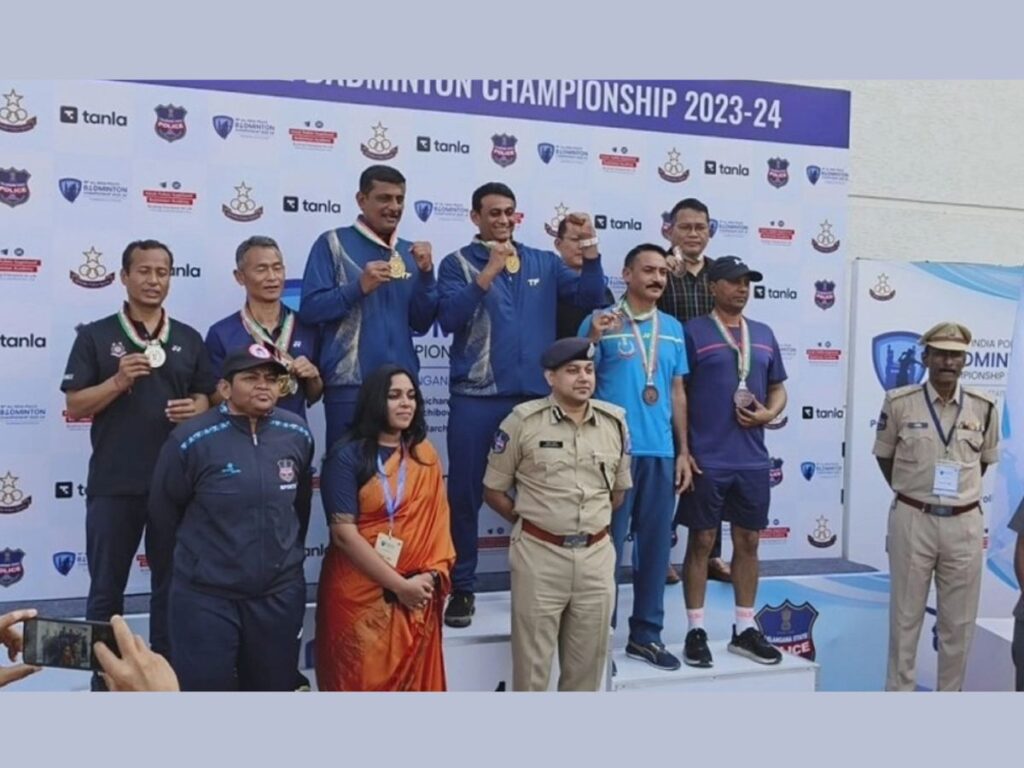 The 16th All India Police Badminton Championship Tournament 2023-24 was hosted by Police and Military Forces from various states at the renowned Gopichand Badminton Academy in Hyderabad, Telangana. Twenty-nine teams from across the nation participated in this tournament, spanning from March 17 to March 23, 2024. The police officers from Gujarat claimed the gold medal by emerging victorious in the men’s doubles tournament.