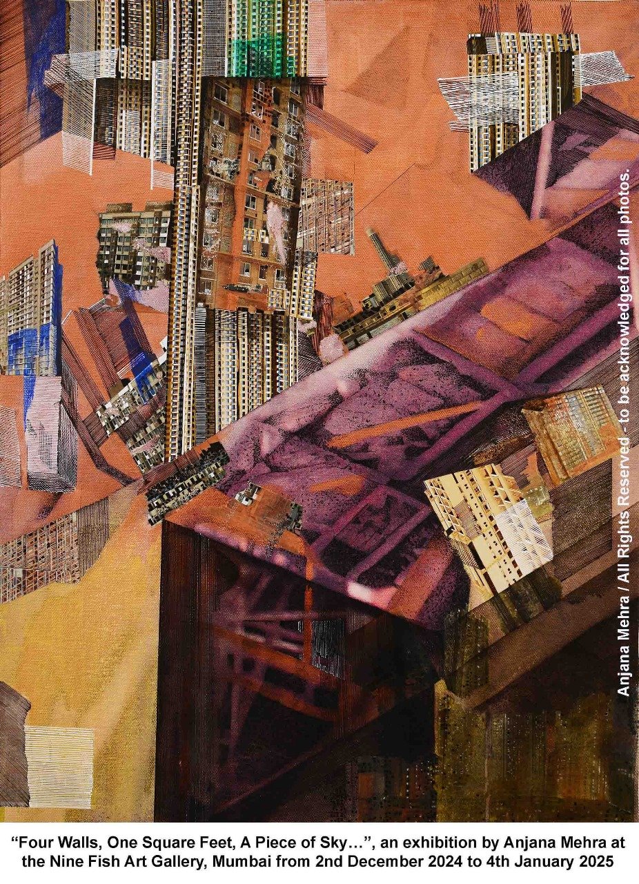 Mumbai (Maharashtra) [India],November 25: ‘’Four Walls, One Square Feet, A Piece of Sky…”, an exhibition by Anjana Mehra at the Nine Fish Art Gallery, Mumbai from 2nd December 2024 to 4th January 2025is a mixed media visual exploration of the transactional unit of real estate space in which entire generations of urban dwellers live out their lives, dreams and dashed hopes.